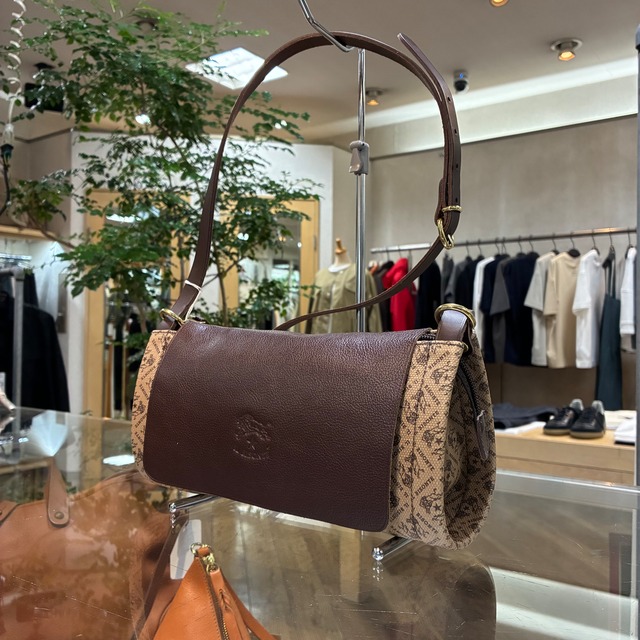 IL BISONTE イルビゾンテ 日本限定 モノグラム プリント レザー 筒形ショルダーバッグ【54262305320】(COL ブラウン×ダークブラウン)
