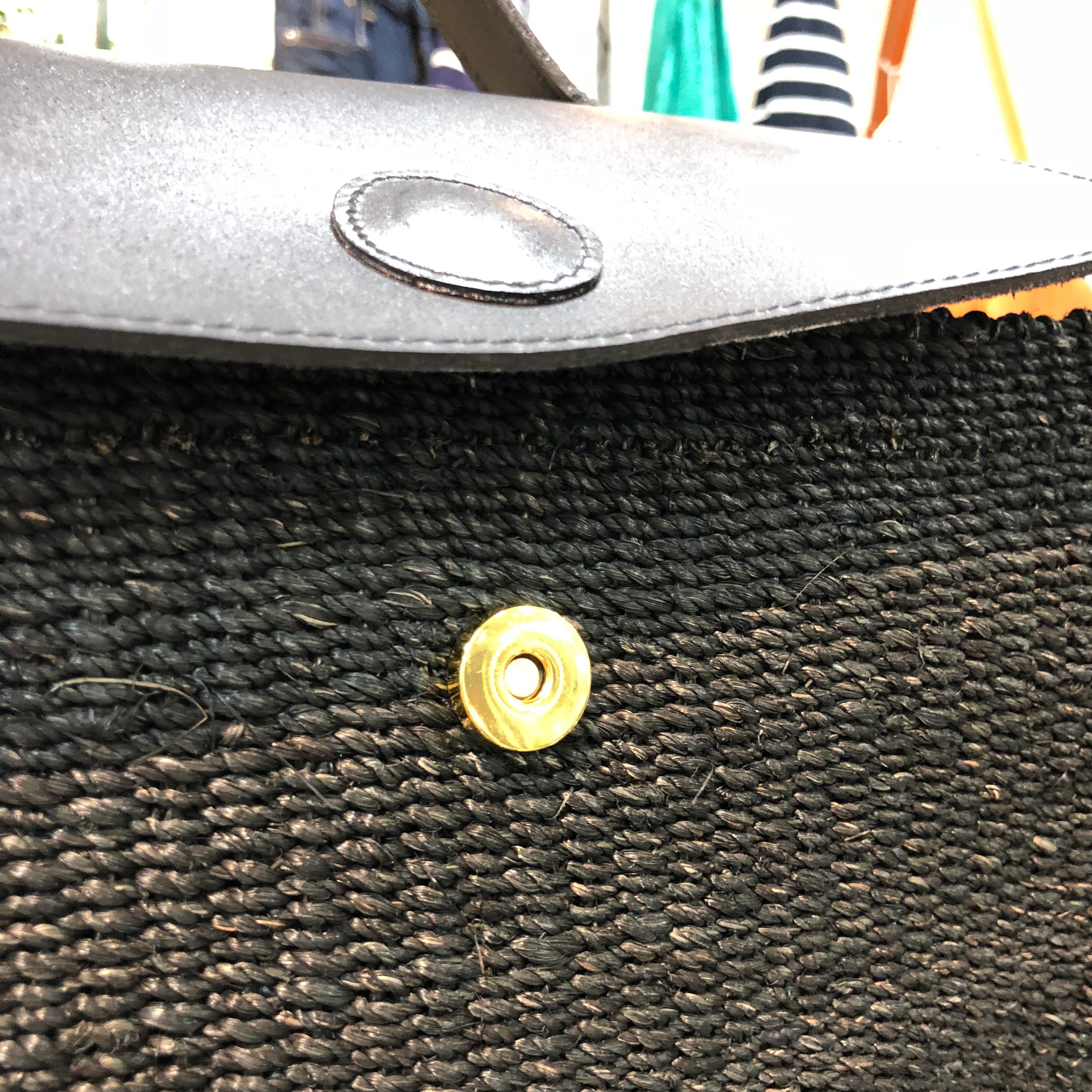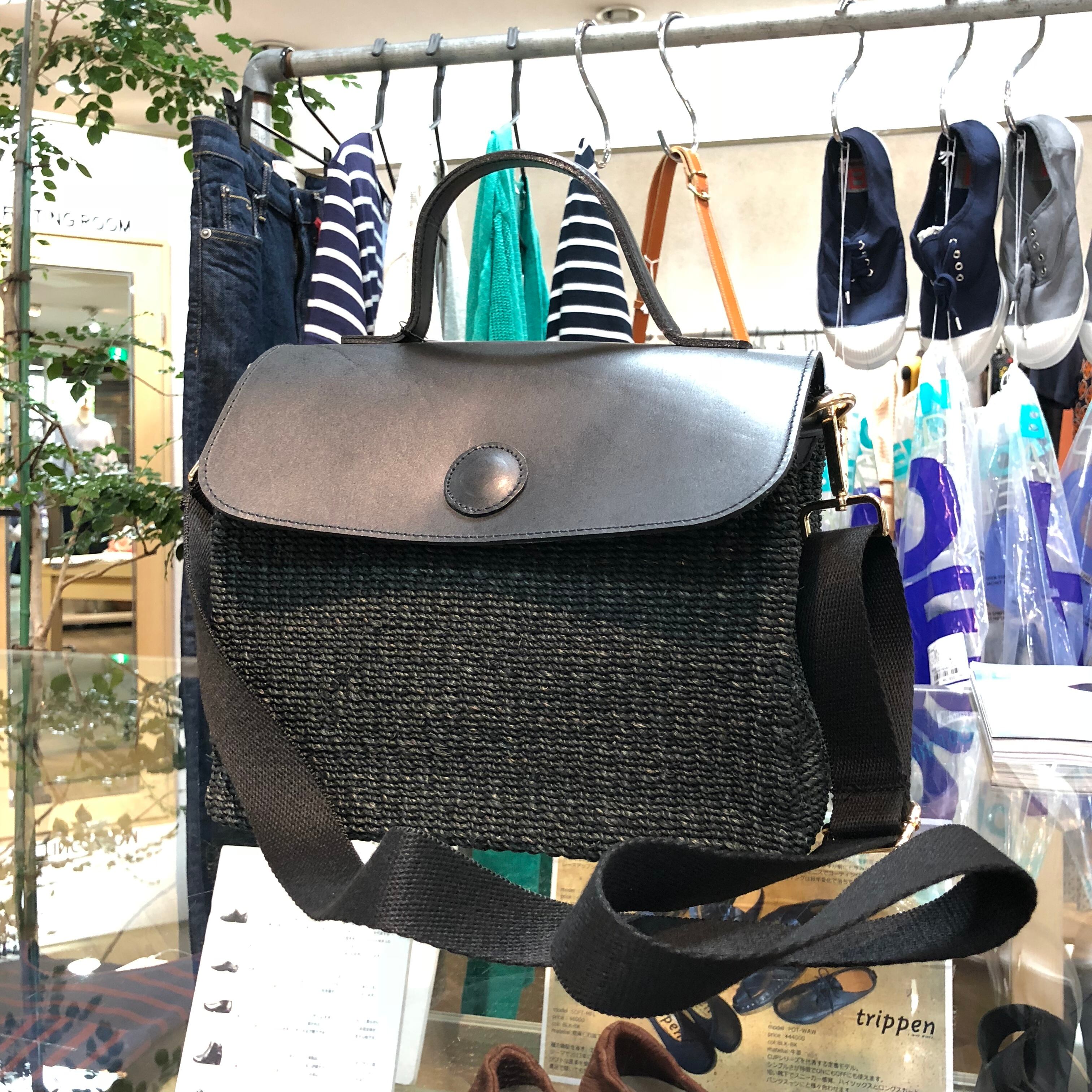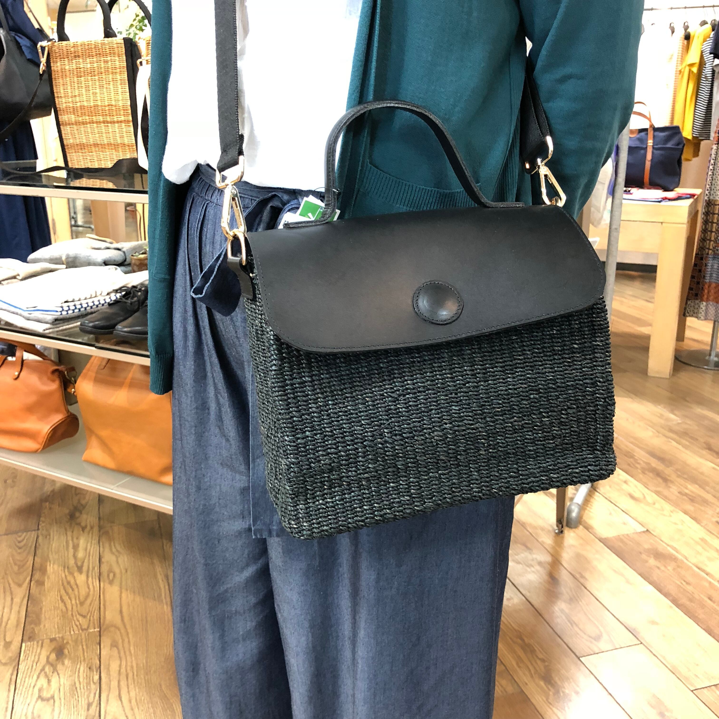 Larone ラロネ レザー×ラフィアコンビ カゴバッグ COL ブラック