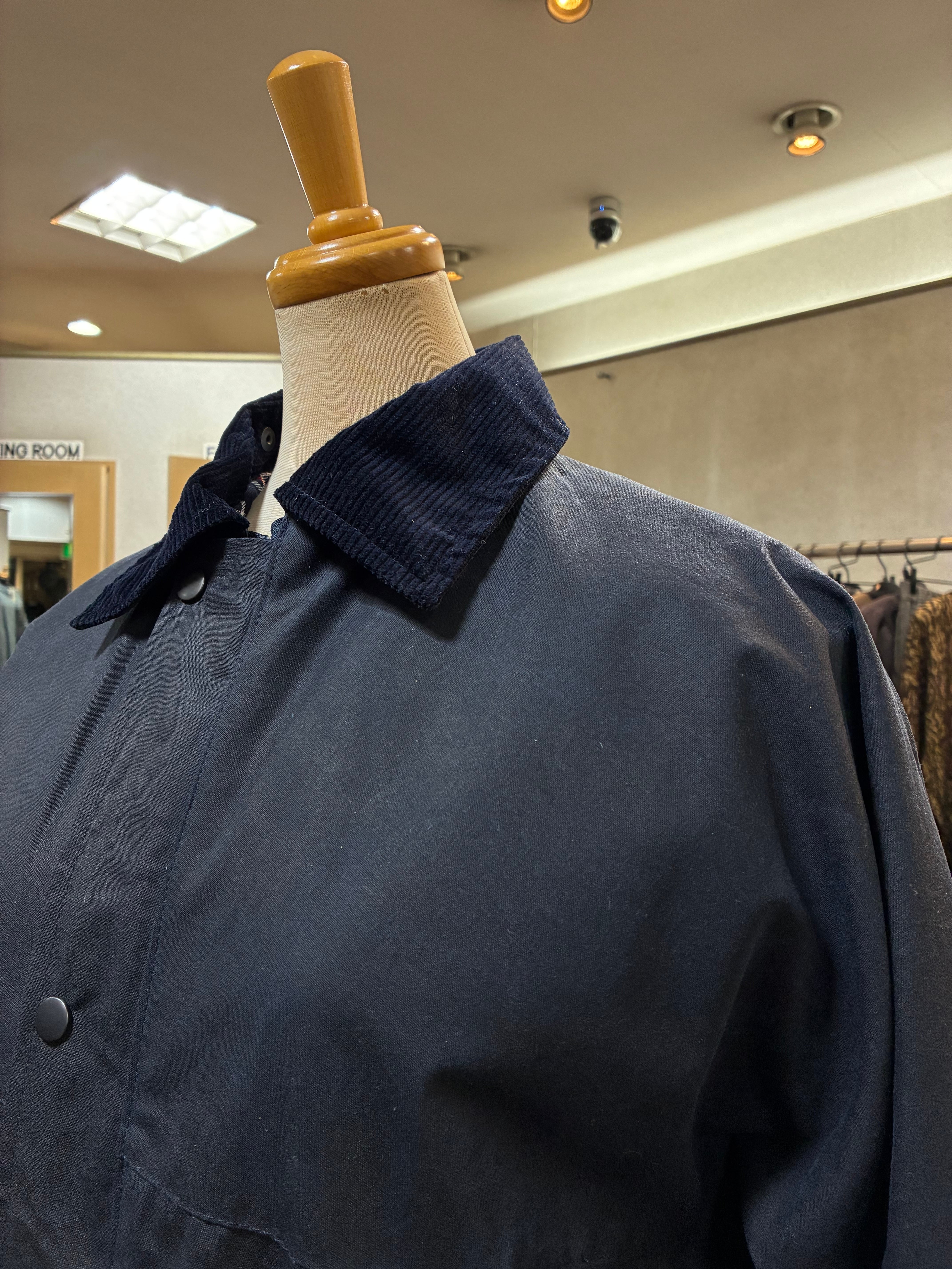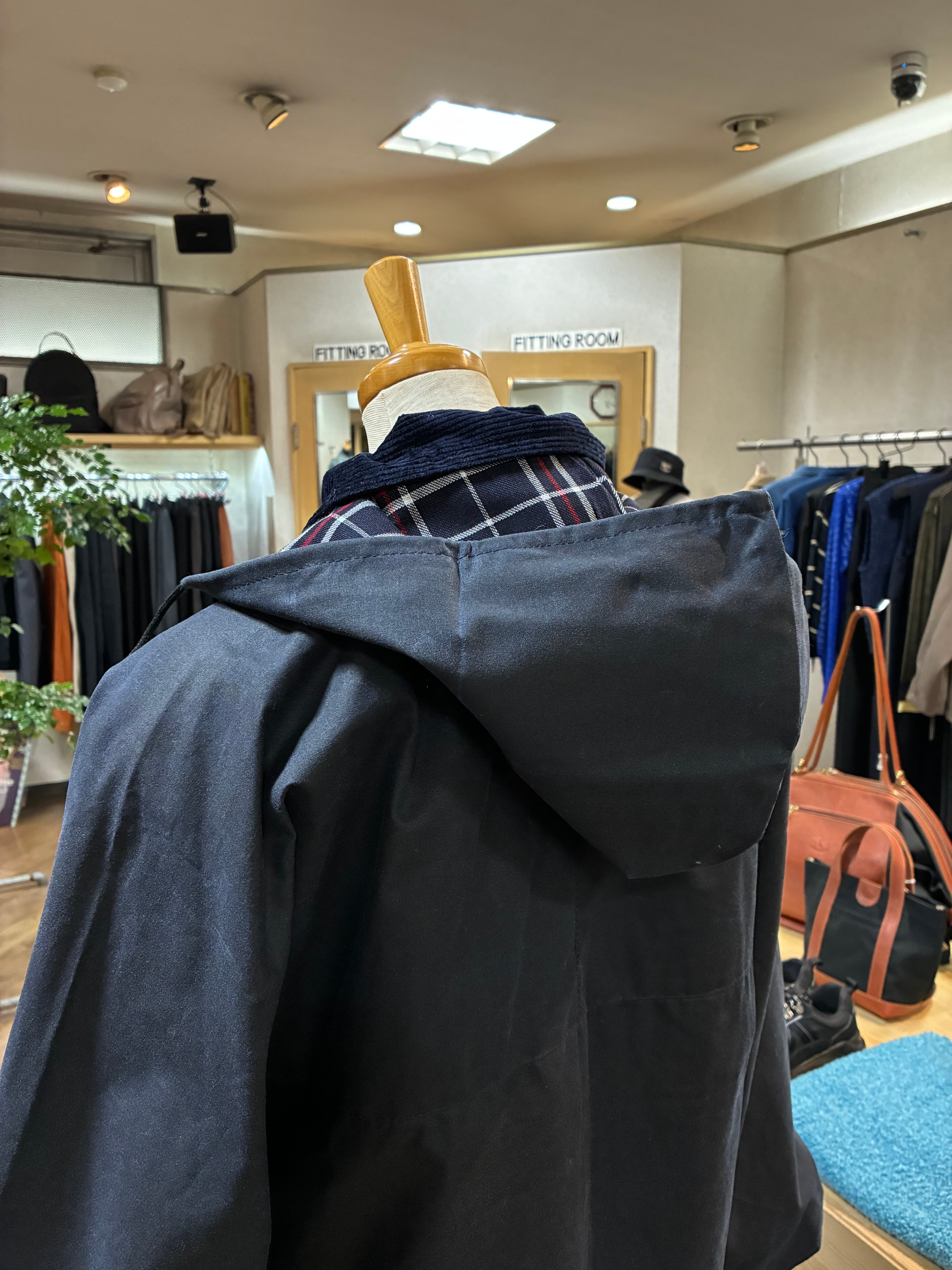 【オイルドジャケットとは】生地の表面にワックスコーティングを施して、防水性、防風性を持たせた耐久性の高いフィールドジャケット。メンテナンスを行うことで長く着用することができ、経年変化を楽しめます。