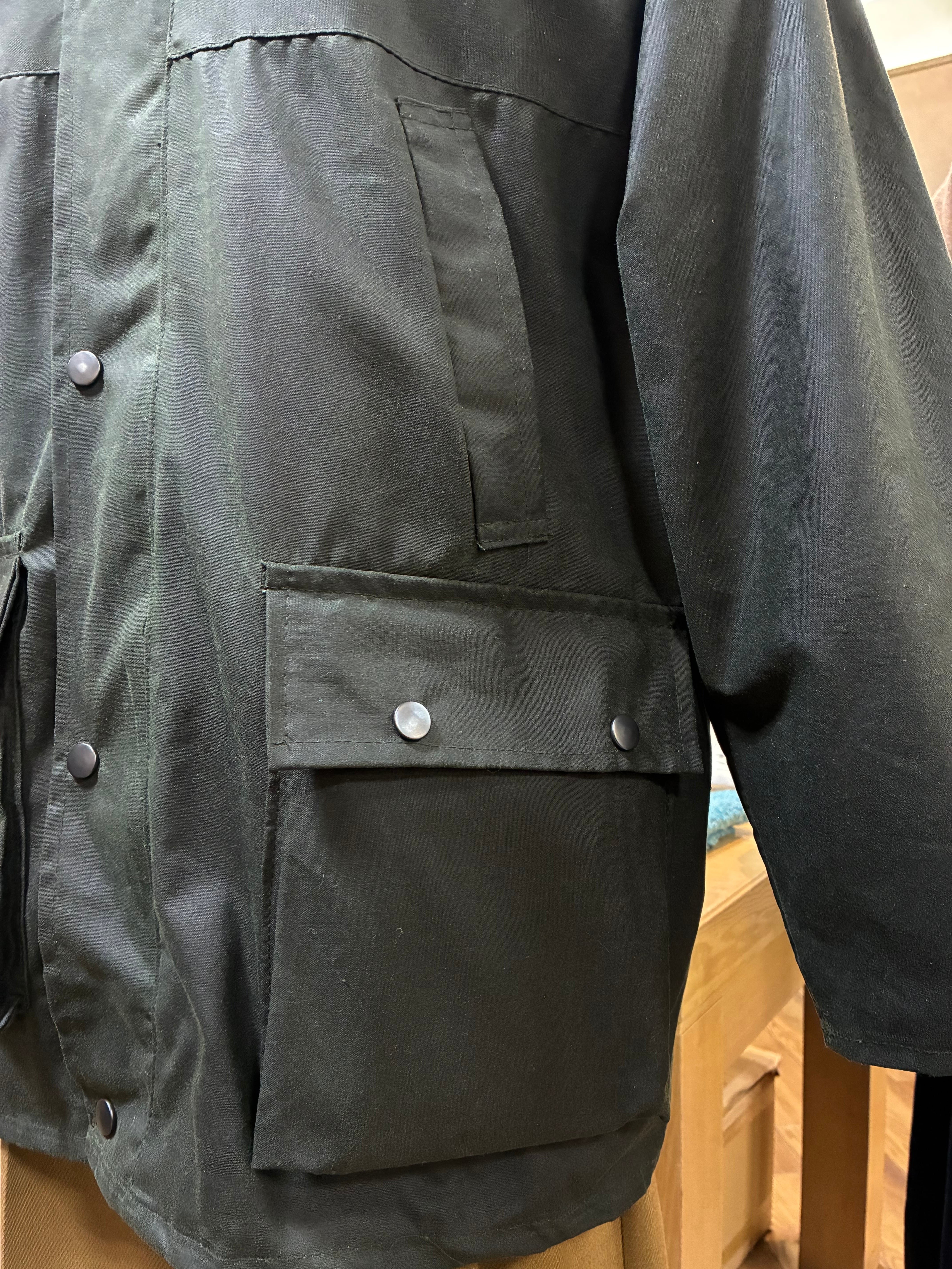 【オイルドジャケットとは】生地の表面にワックスコーティングを施して、防水性、防風性を持たせた耐久性の高いフィールドジャケット。メンテナンスを行うことで長く着用することができ、経年変化を楽しめます。