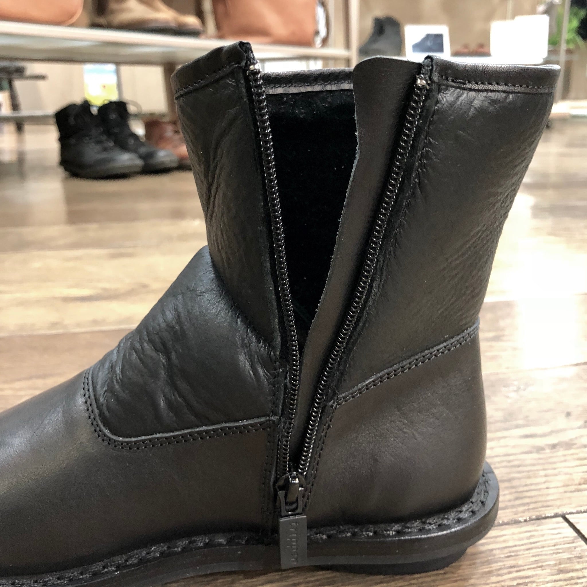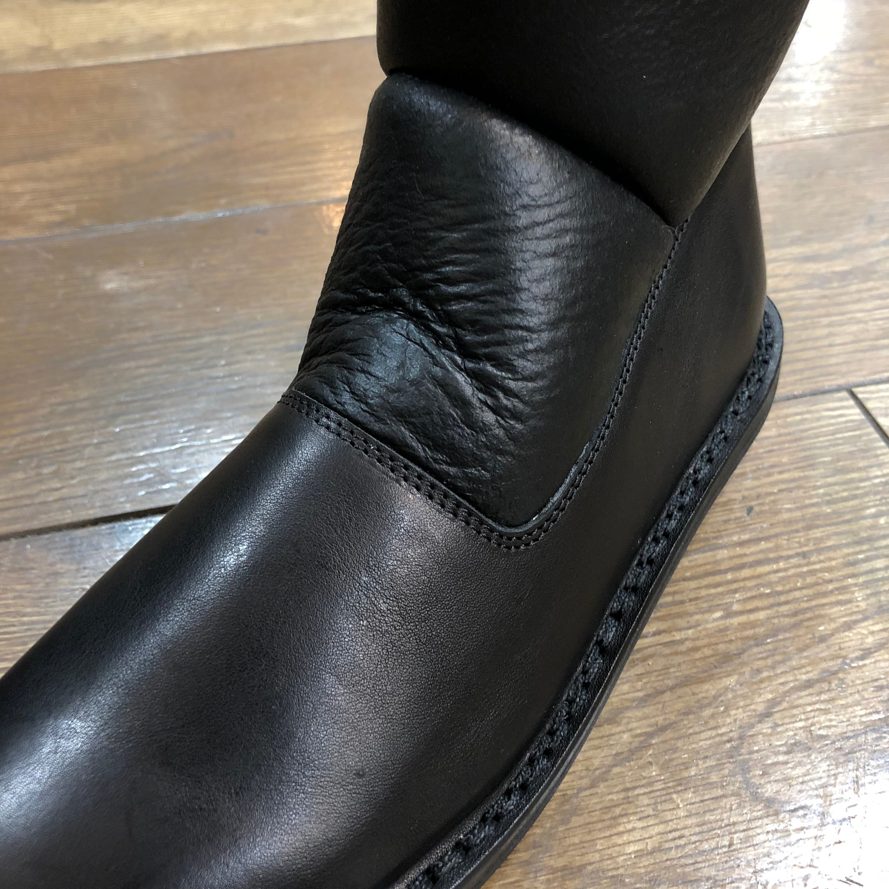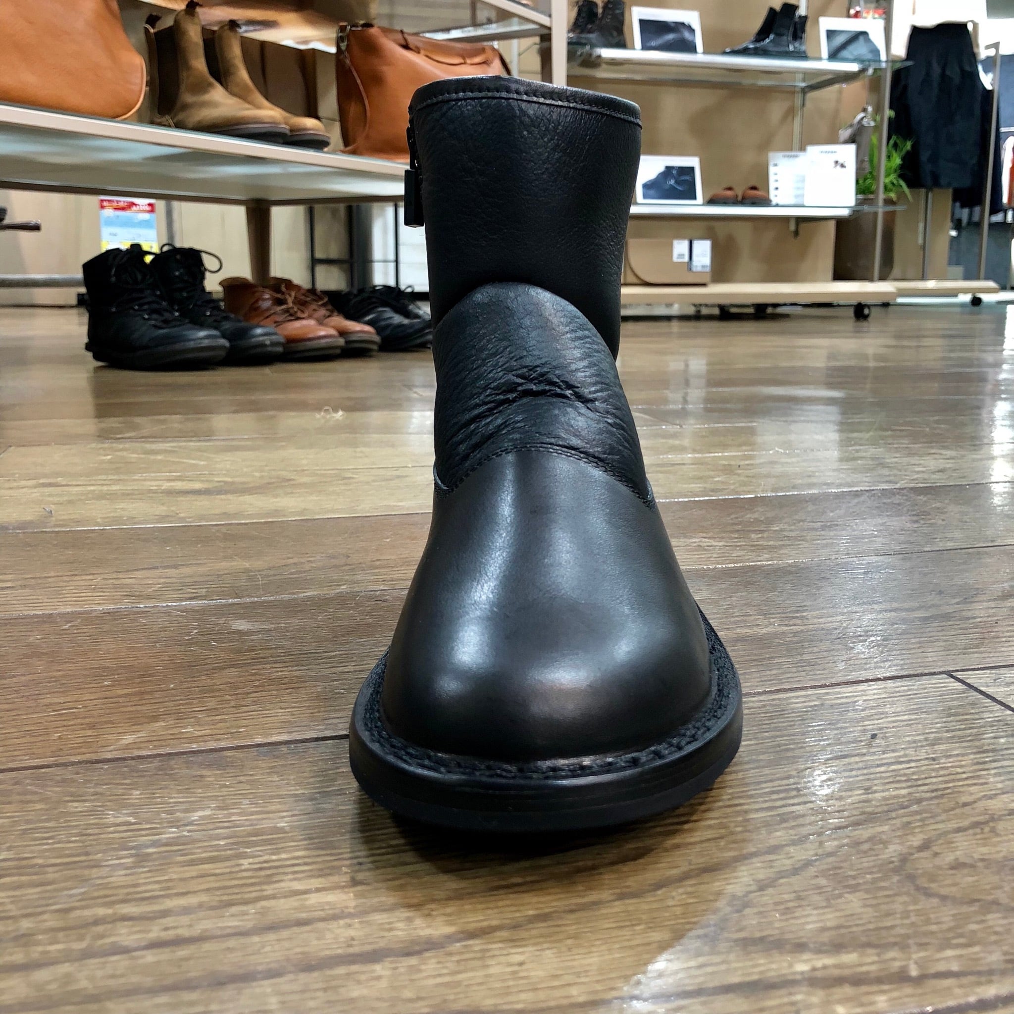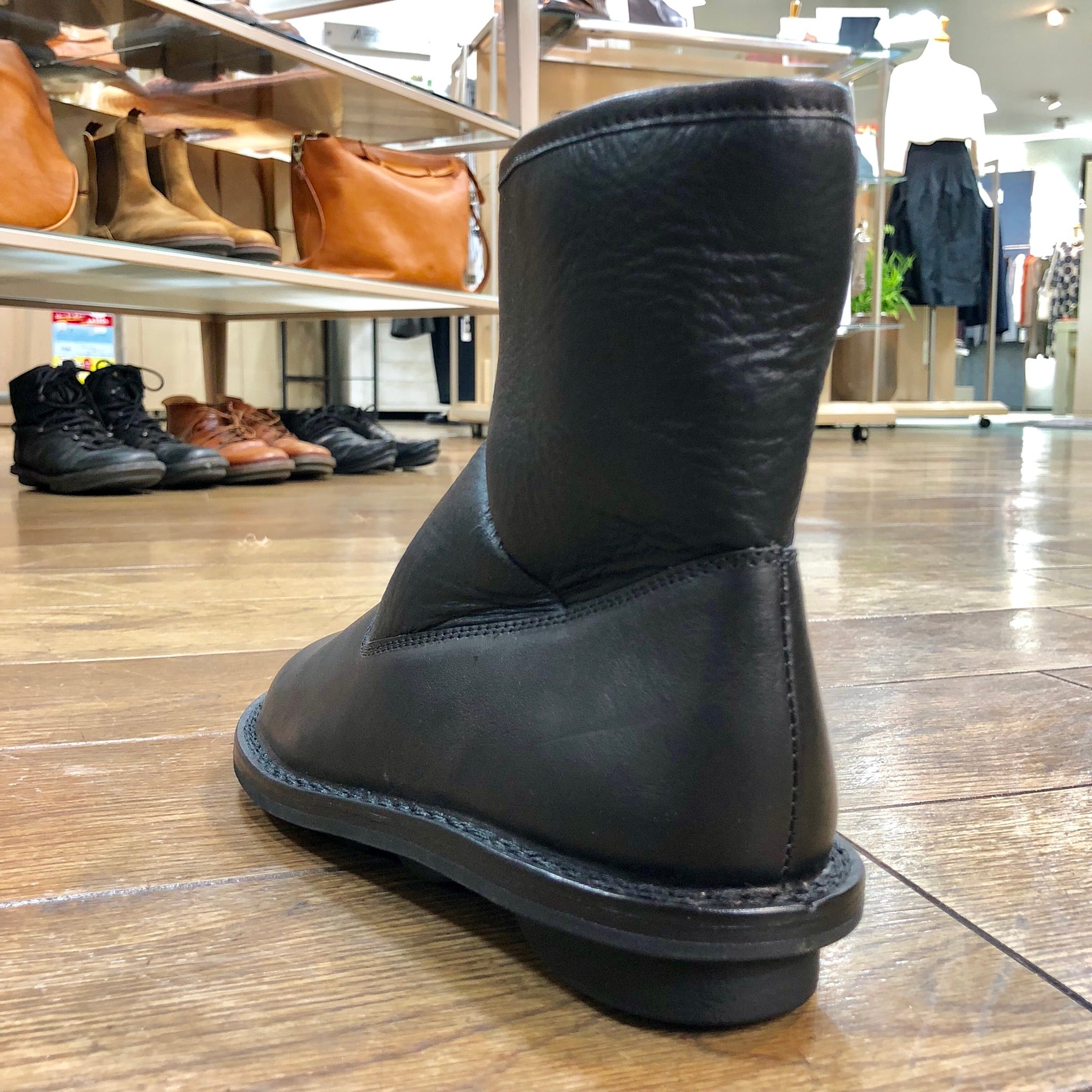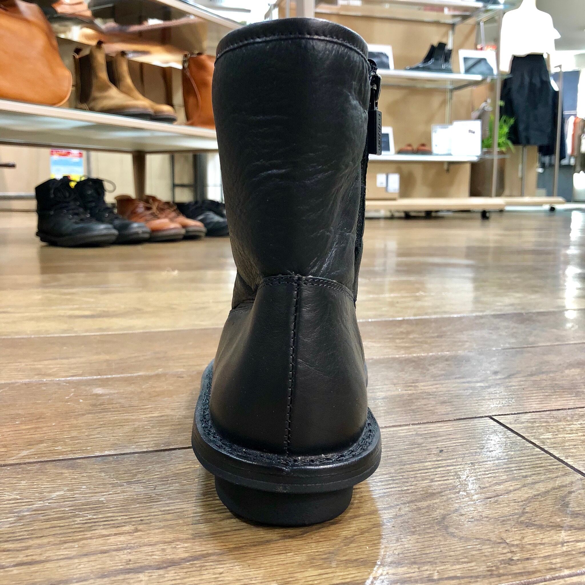 筒周りはシープムートンの一枚革を使用したシンプルなショートブーツ。
