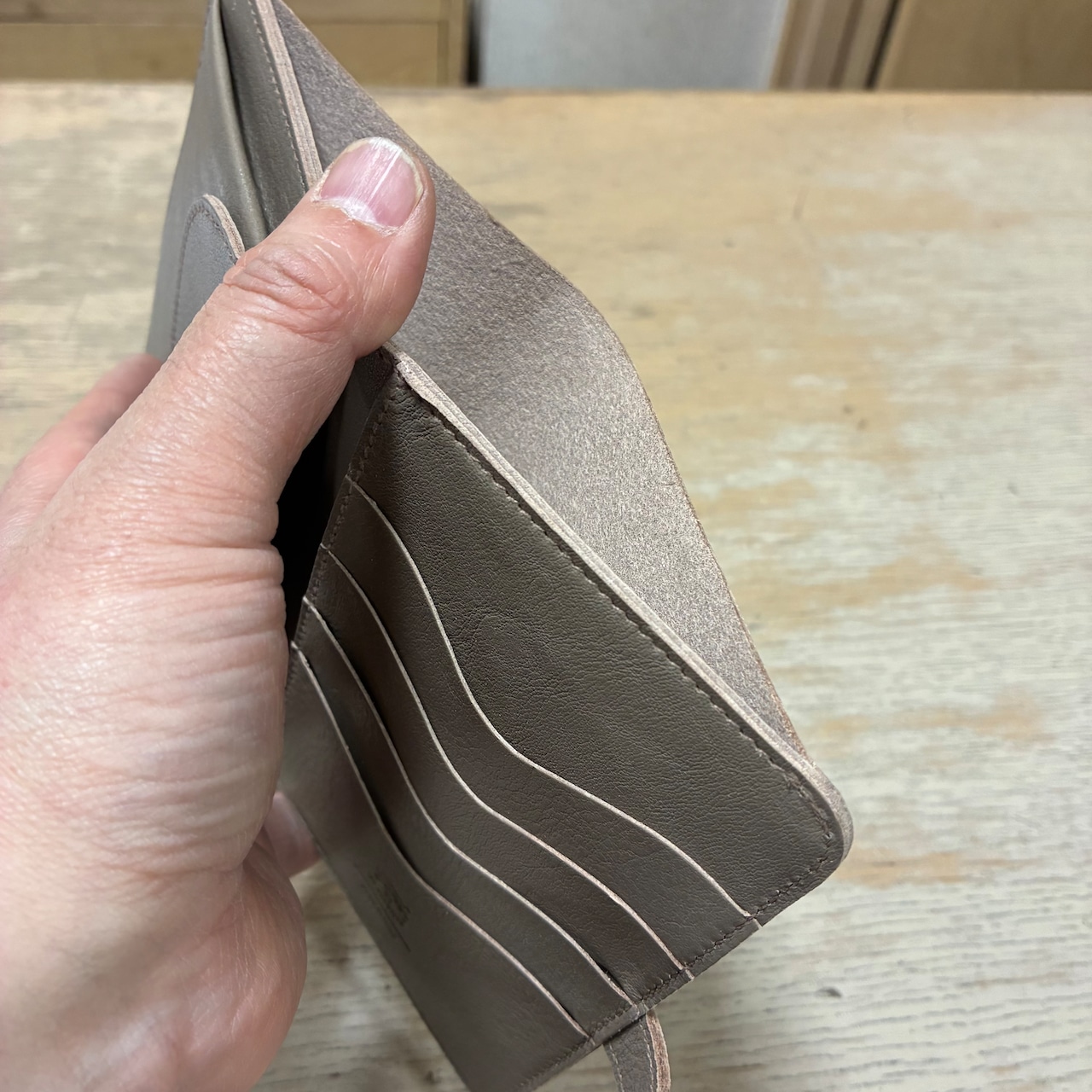 「タンニンなめし」でなめされた皮の中でも、型押しや染色などの表面加工していないナチュラルレザーを「ヌメ革」と呼びます。一般には、染色を施したものを含めていう事が多いです。