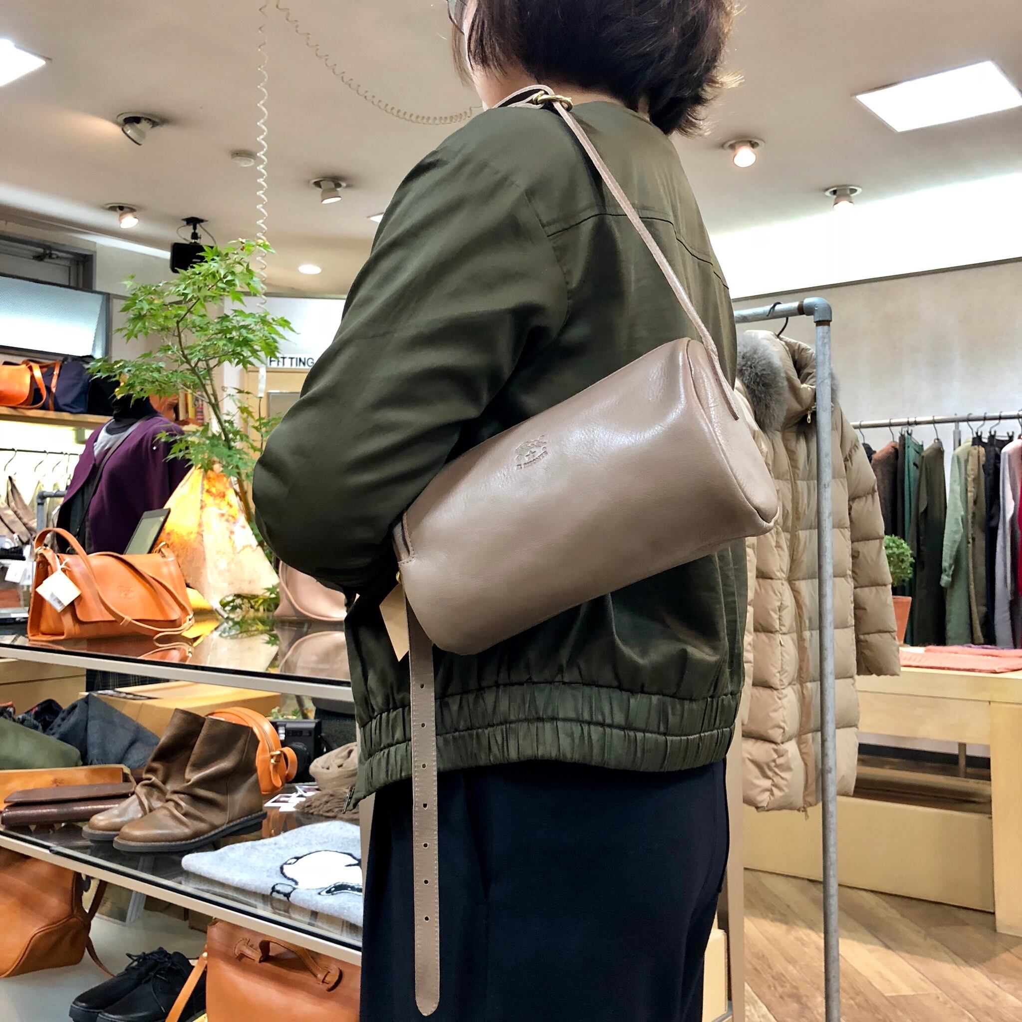 IL BISONTE イルビゾンテ レザー 筒型ショルダーバッグ【54182300311】 (COL グレー)