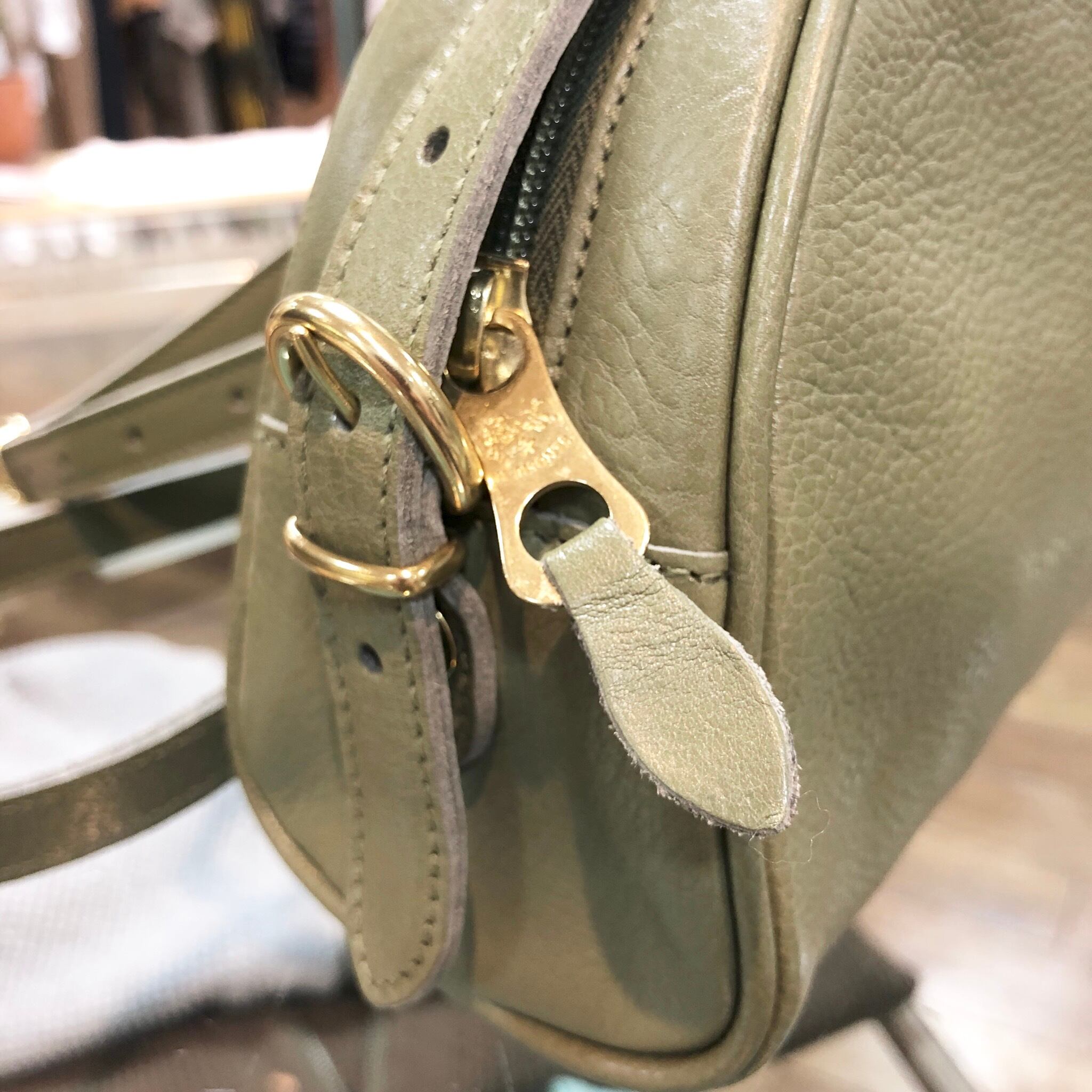 丸みのあるフォルムが人気の定番ポシェットの2019春夏シーズンカラーのオリーブです。