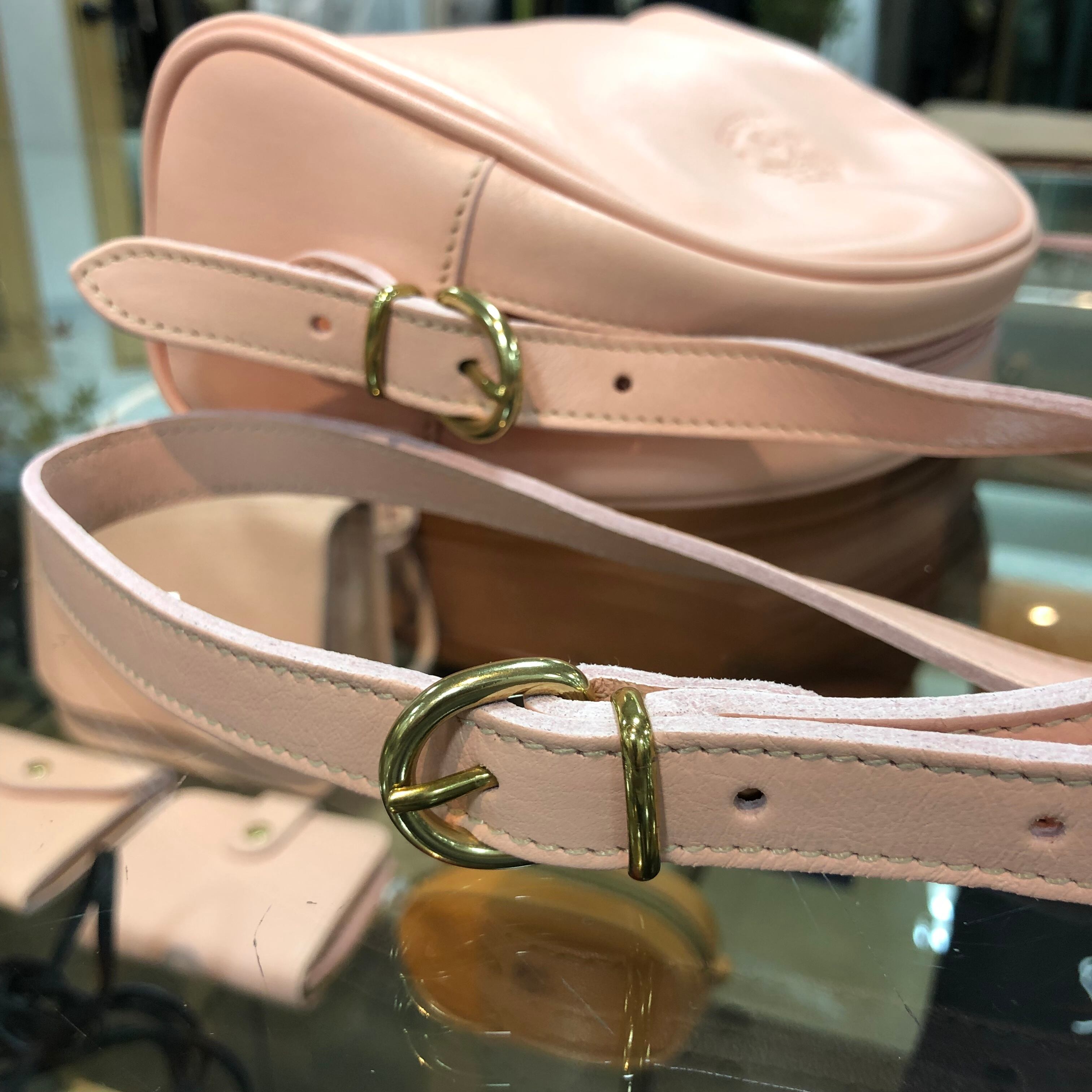丸みのあるフォルムが人気の定番ポシェットの2019秋冬シーズンカラーのピンクベージュです。