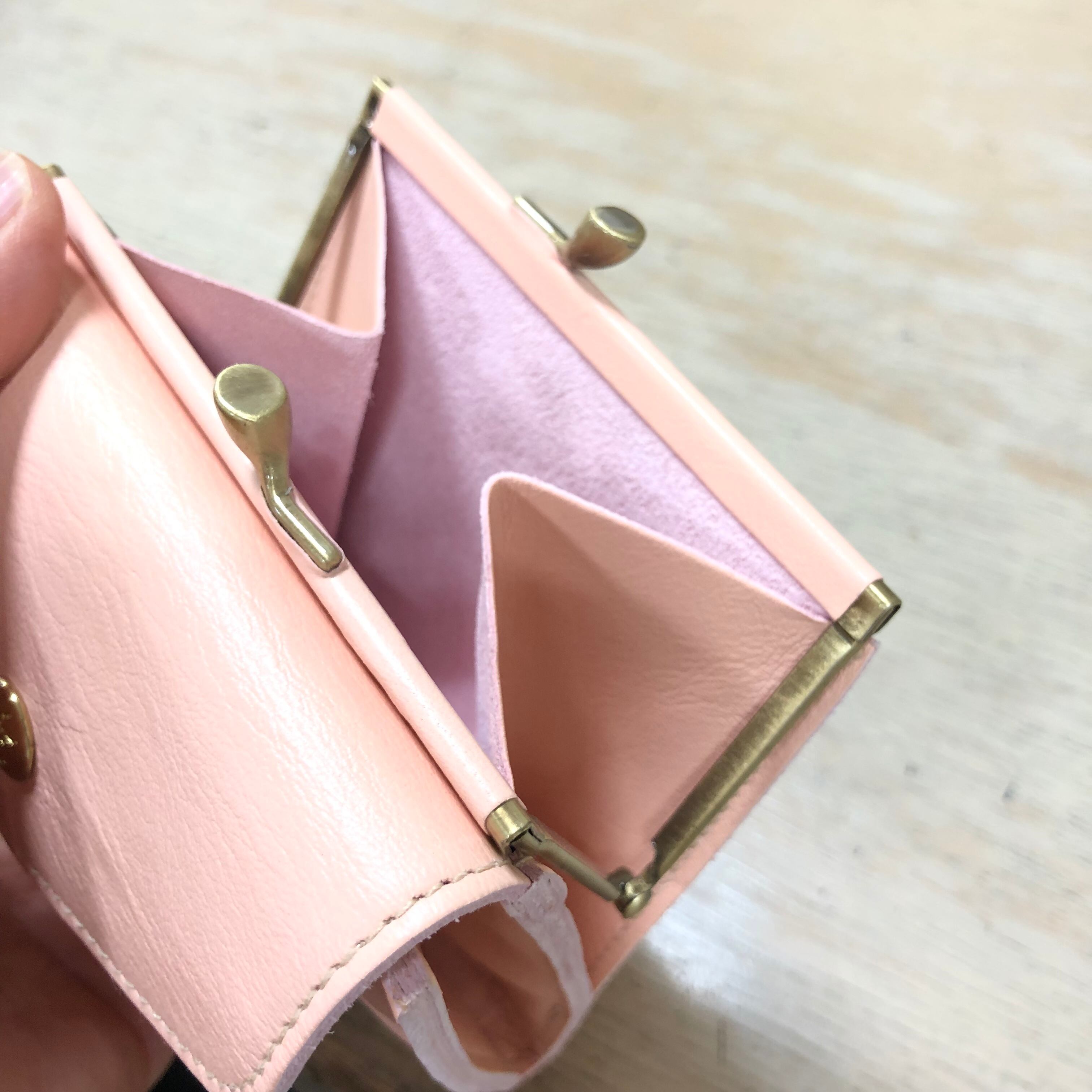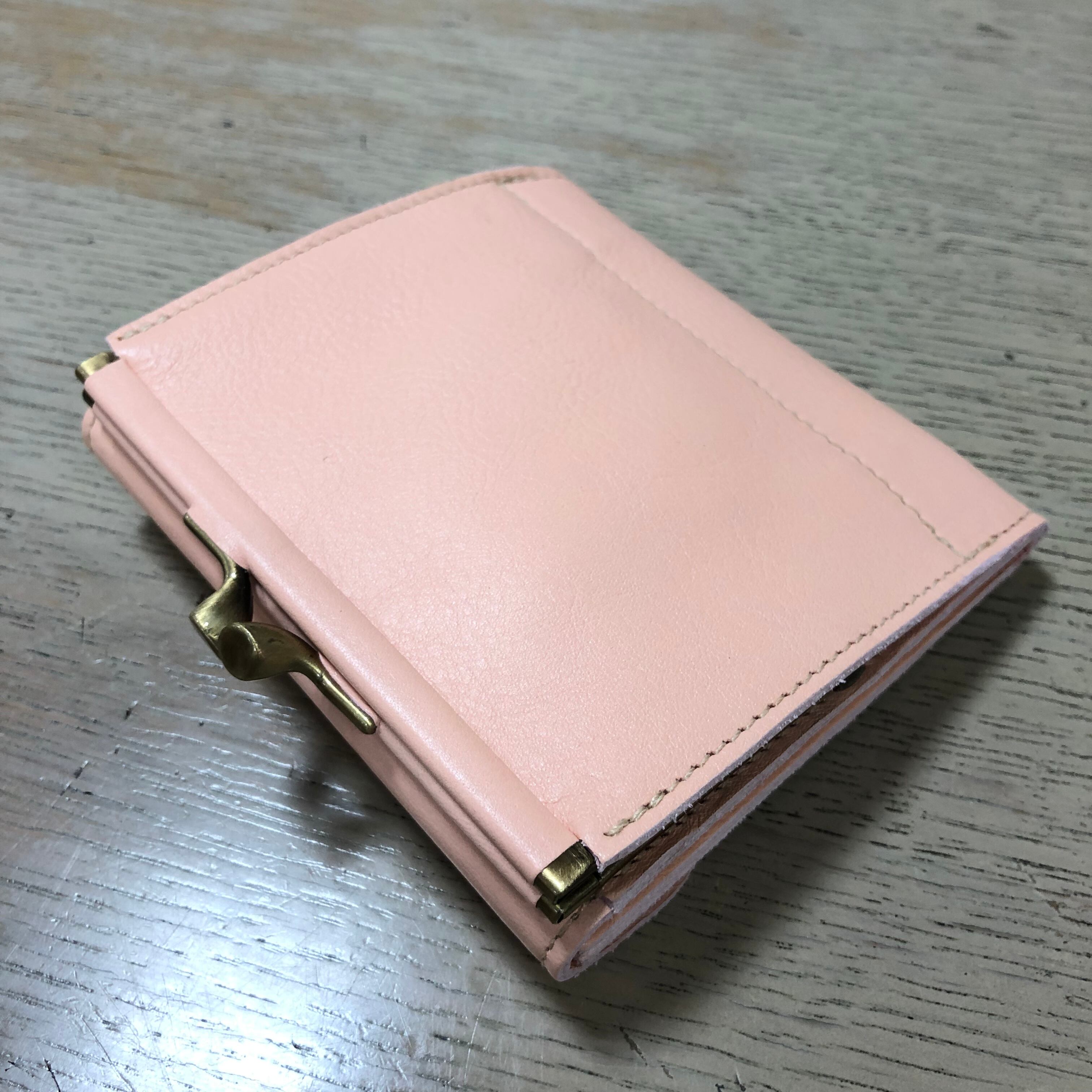 イルビゾンテのロングセラー定番2つ折りガマ口財布の2019秋冬シーズンカラーのピンクベージュです。