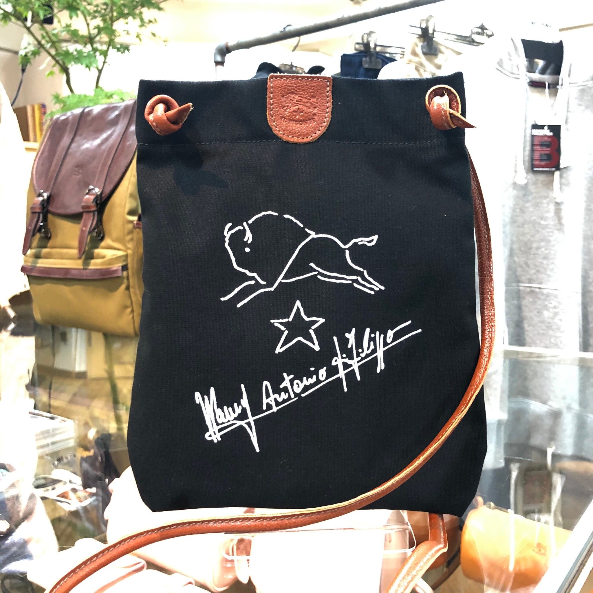 創業者ワニー・ディ・フィリッポ氏サインのプリントが印象的なキャンバスポシェットです。