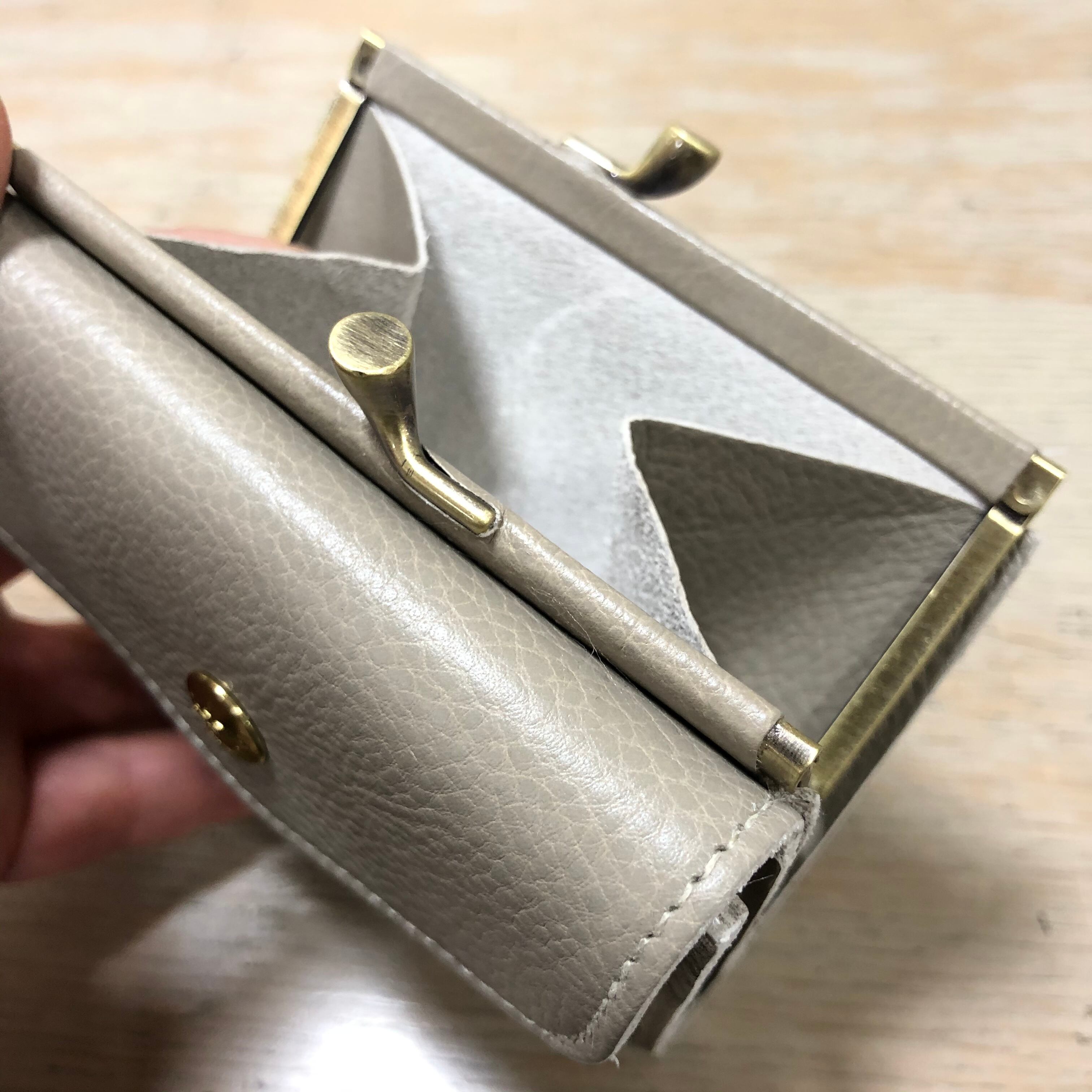 フラップとがま口がついたWフェイスの2つ折り財布。