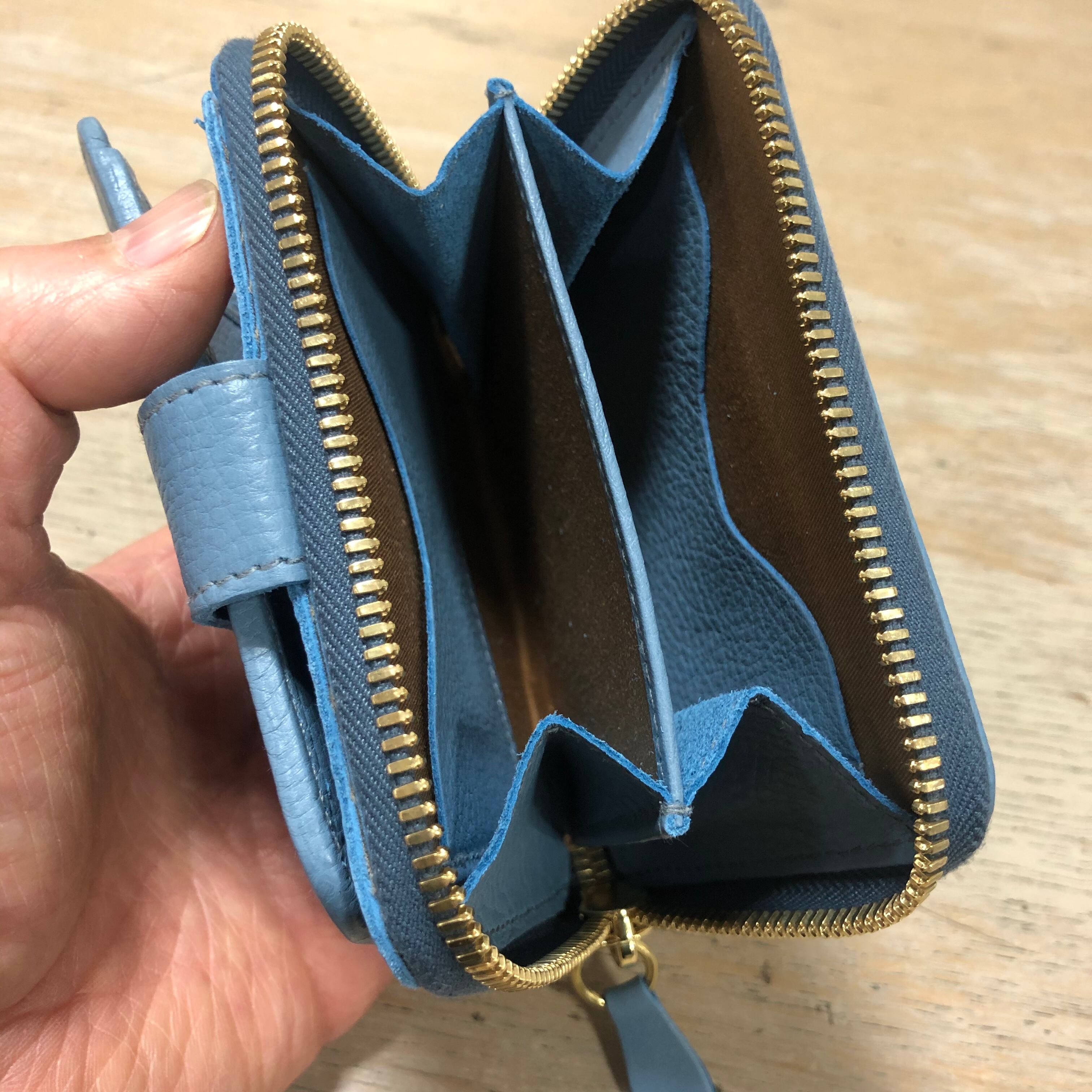 ラウンドジップ仕様の小銭入れは中で間仕切りされ、さらにポケットが2つ付いています。
