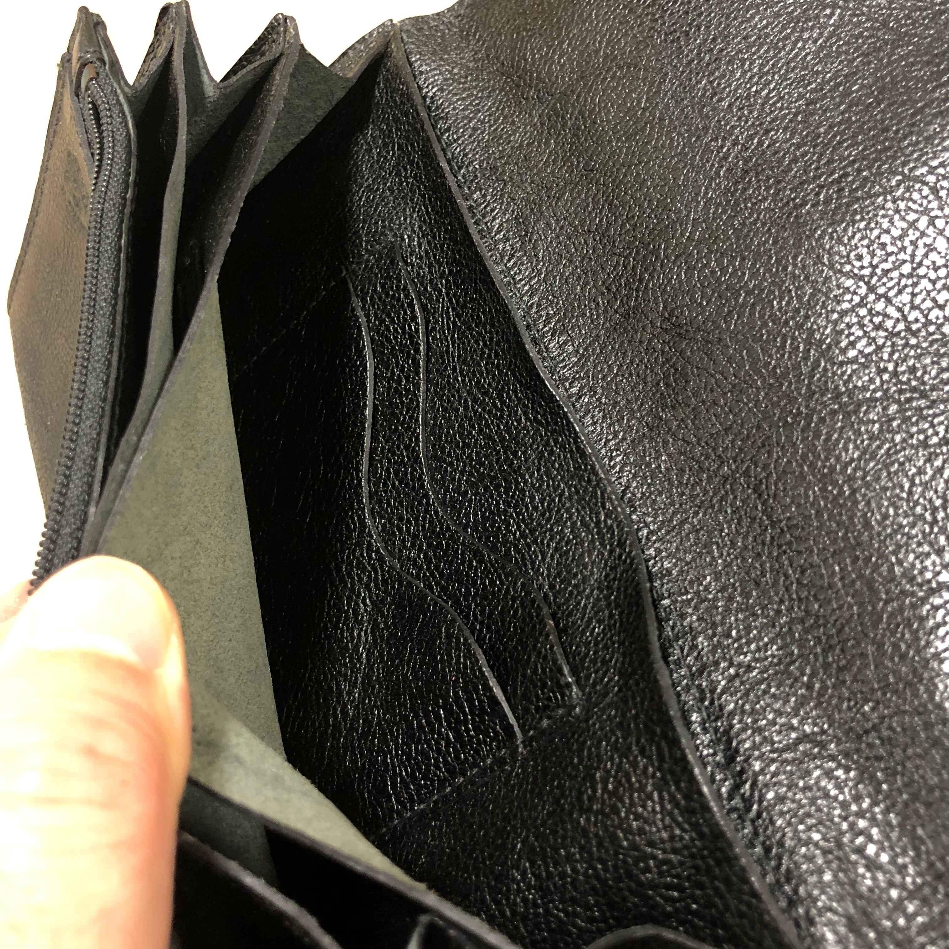 そのうち1カ所はファスナー仕様の小銭入れ、2カ所には、それぞれ2枚づつ収納できるカードポケットがあります。