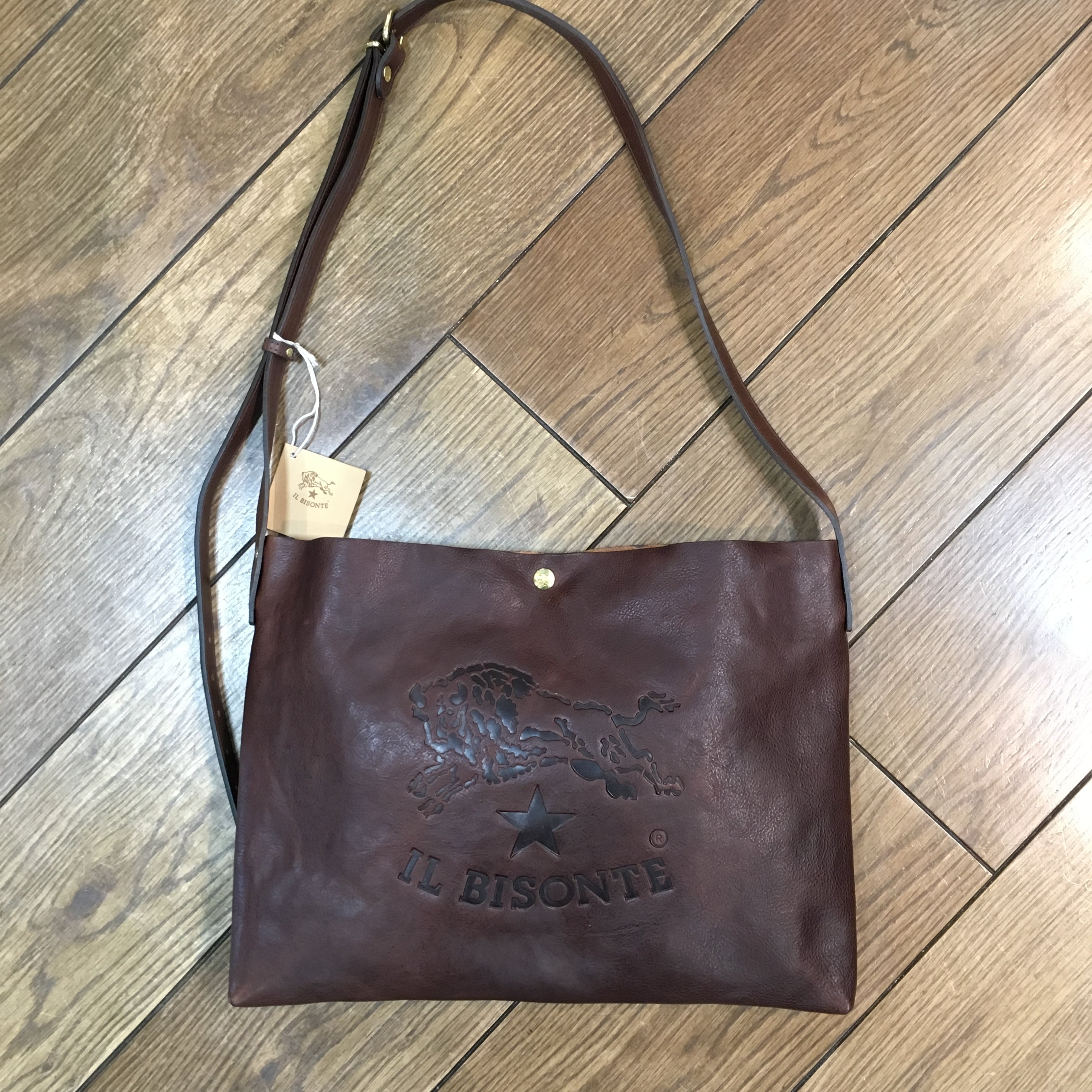 IL BISONTE イルビゾンテ バケッタビンテージレザー ビッグロゴ ショルダーバッグ (Col CESTNUT ダークブラウン) 54162307511