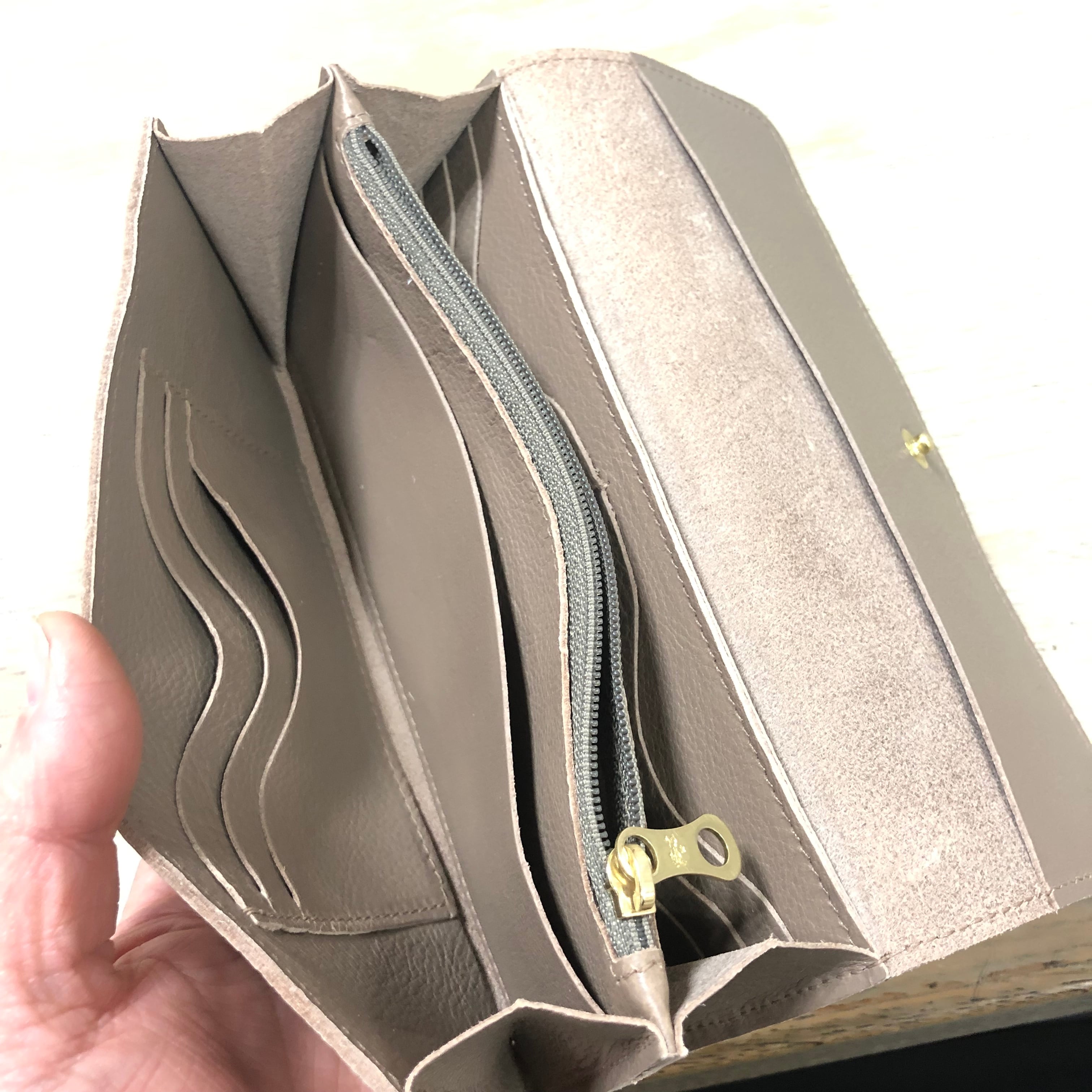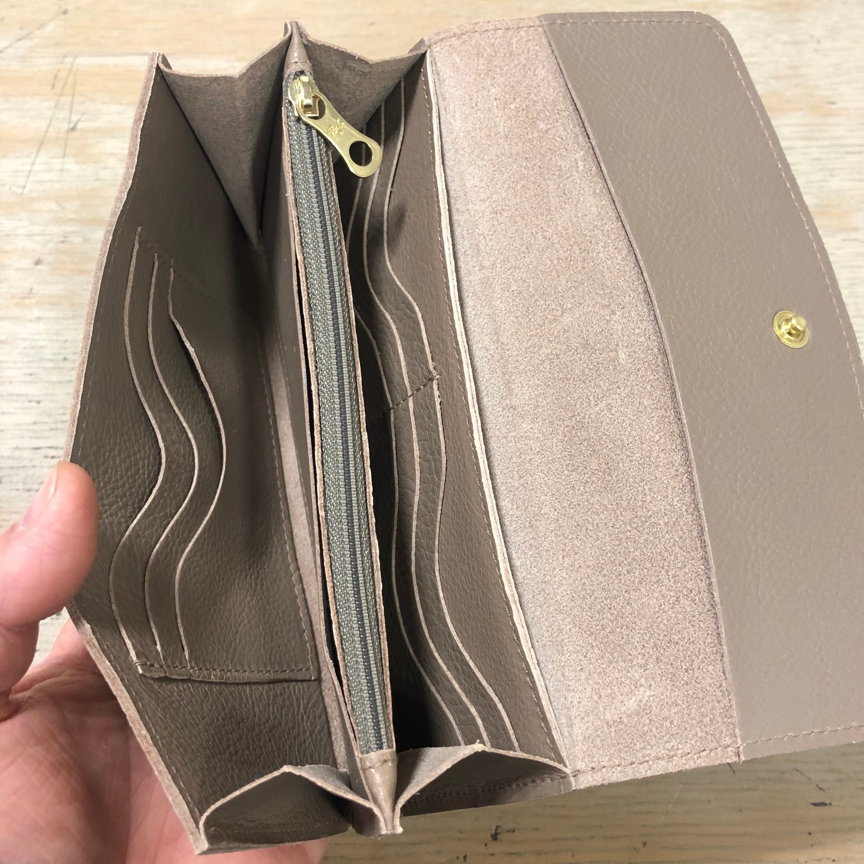 中央にファスナー式コインポケット、その両サイドに札入れ、カードポケットをそれぞれ3つと6つあり、収納力に優れた一品です。