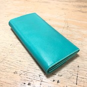 中身が取り出しやすいデザインの長財布の2022秋冬シーズンカラー「PERSIAN GREEN ペルシアングリーン」です。