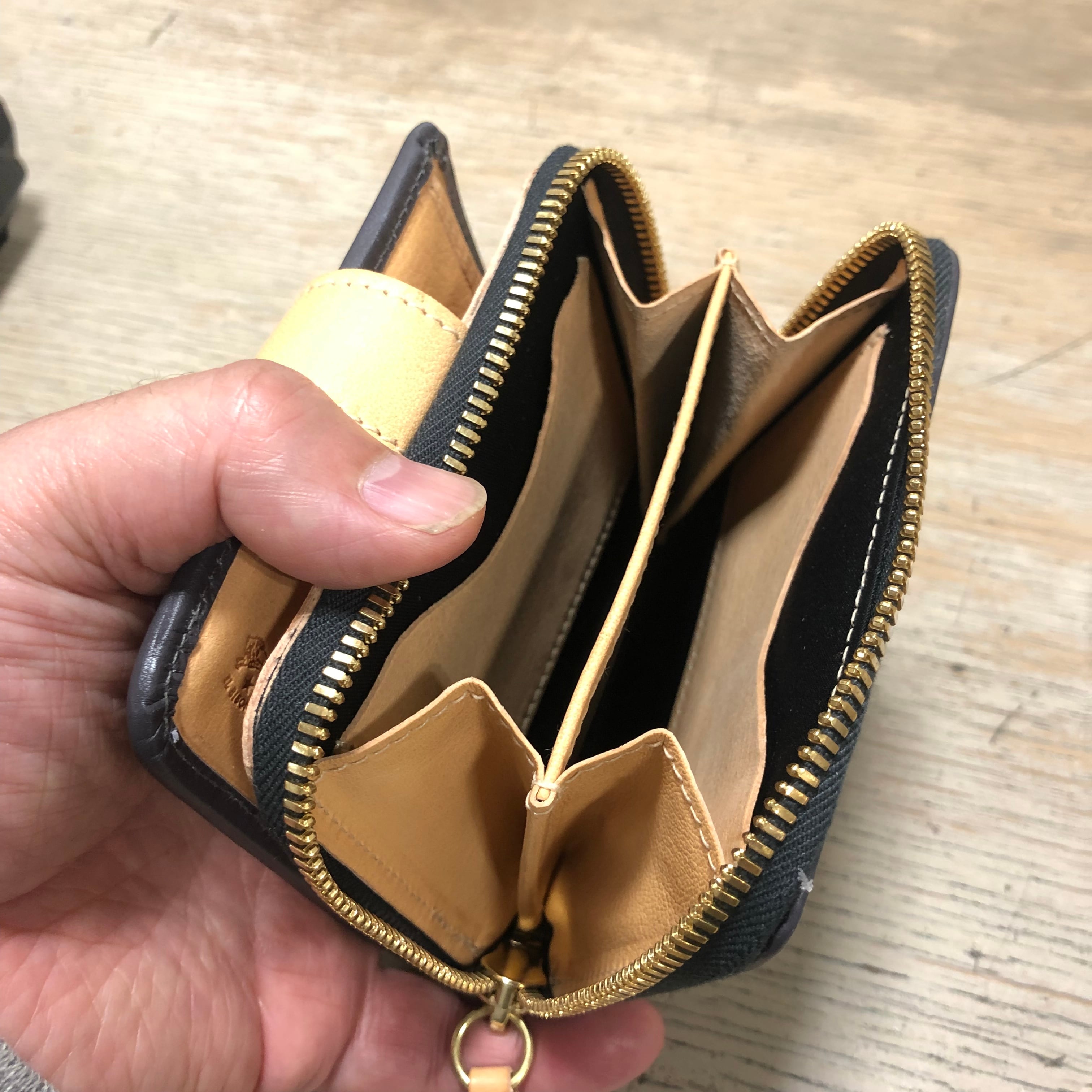 ラウンドジップ仕様の小銭入れは中で間仕切りされ、さらにポケットが2つ付いています。