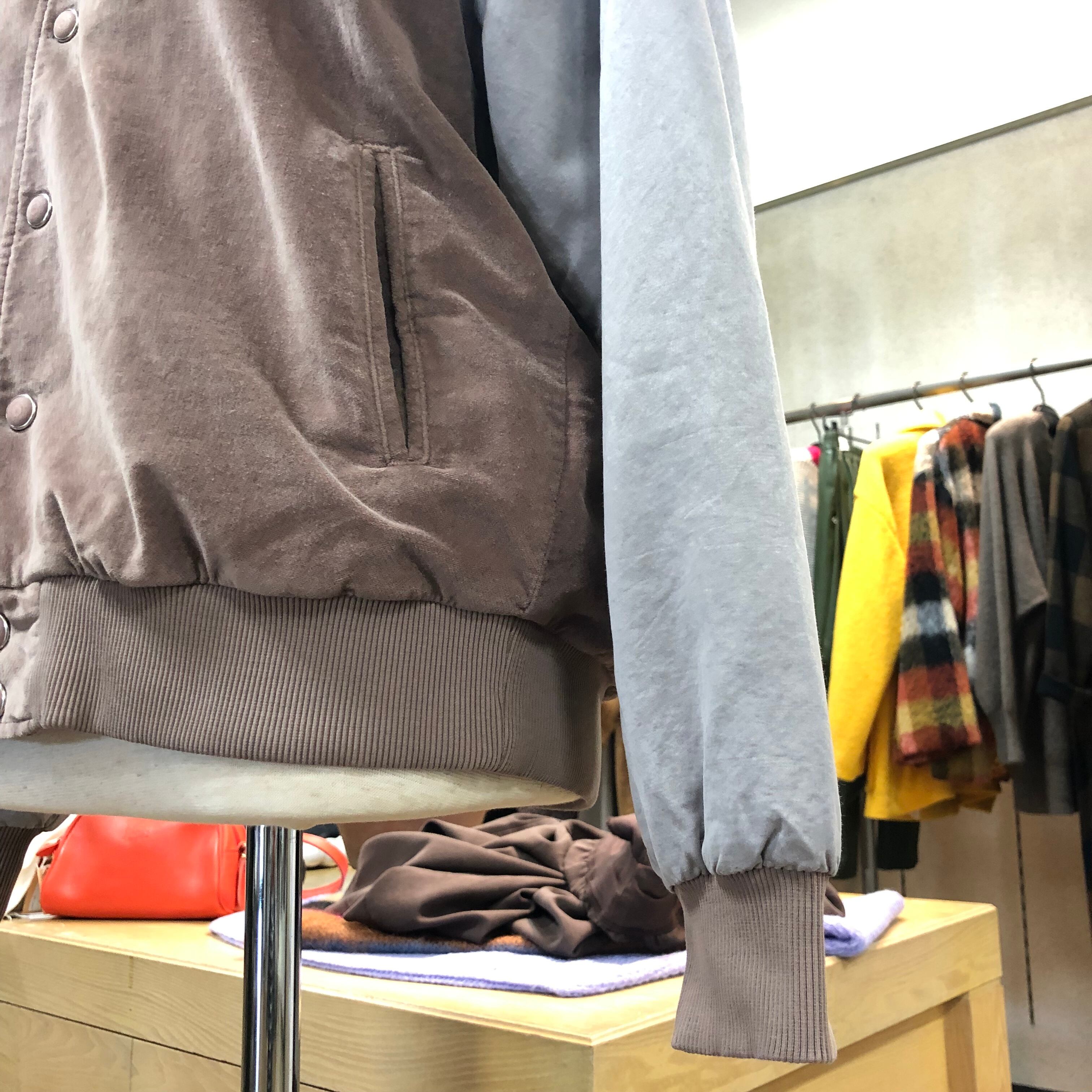 見頃は別珍素材で、アーム部分はサテン素材。ステッチキルトの裏地とポリエステルの中綿がウォーム感もあります。