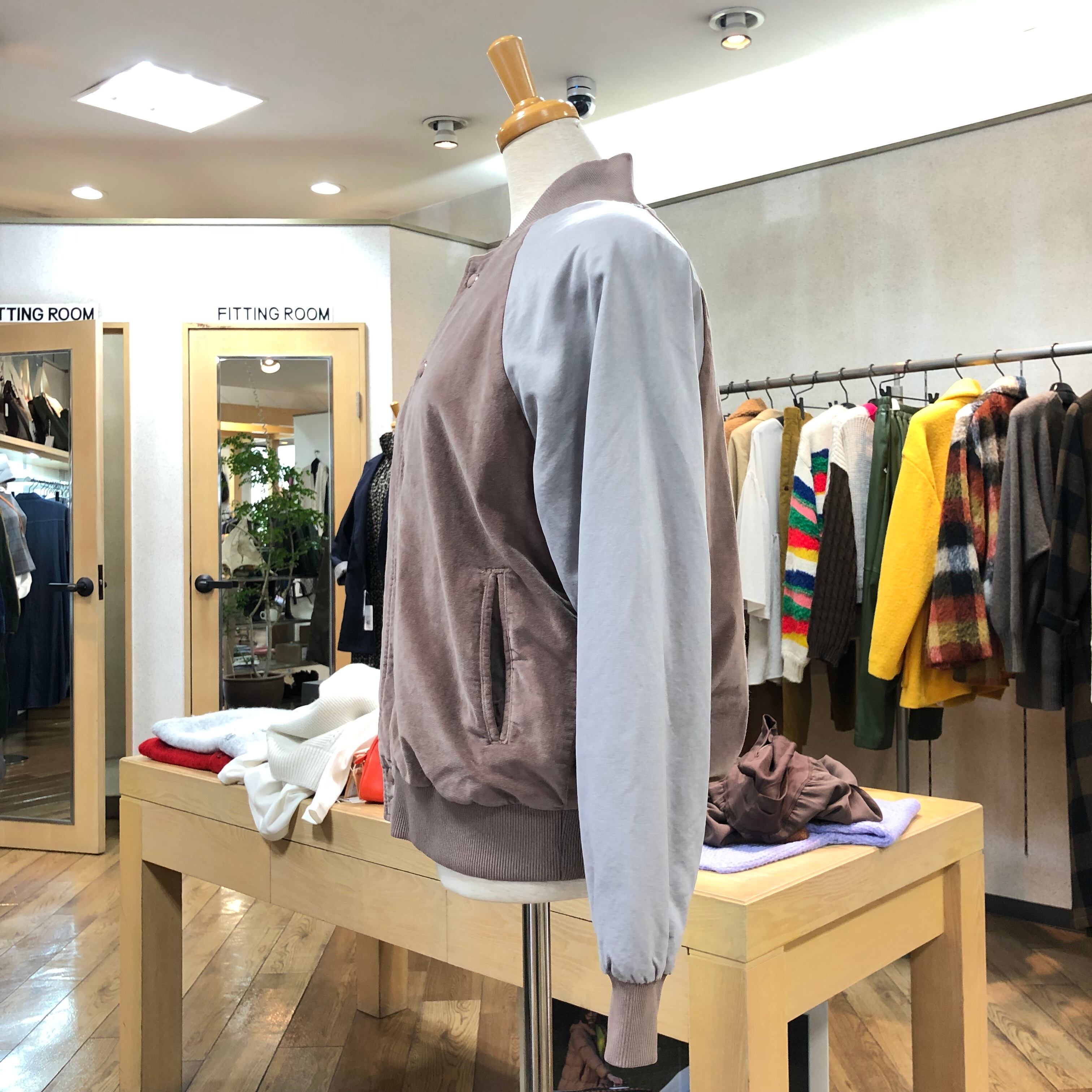 ミリタリーなMA1ブルゾンをレーヨン・シルク混の上品な別珍とサテン素材で女性らしく仕上げています。