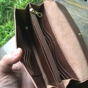 ファスナーポケットで間仕切りされ、カードポケットが3カ所と6カ所。